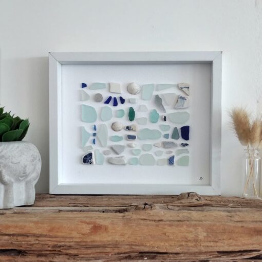Sylwia zbiera na plażach nadbałtyckich kawałki szkła, które dawno temu trafiły do morza i stały się matowe i wygładzone przez fale. Potem tworzy z nich obrazki, kartki, biżuterię, jak i zestawy do samodzielnego tworzenia obrazków.